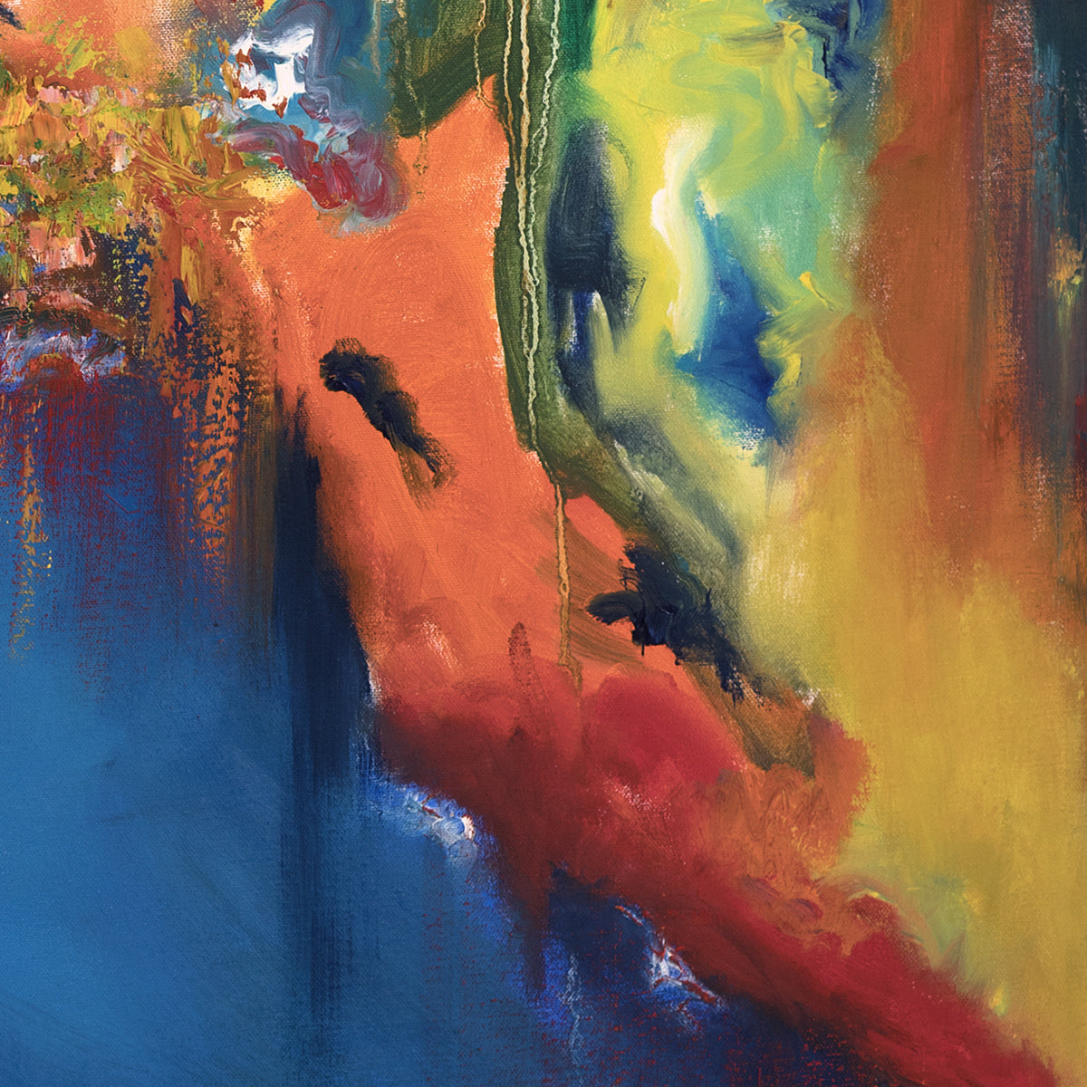 Ölfarbe auf gespannter Leinenleinwand auf Holz, 100x100x4 cm / 39.37x39.370x1.57 Zoll.