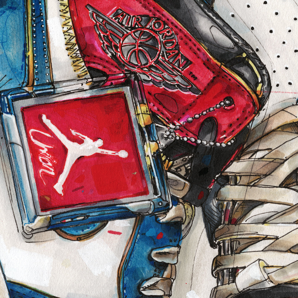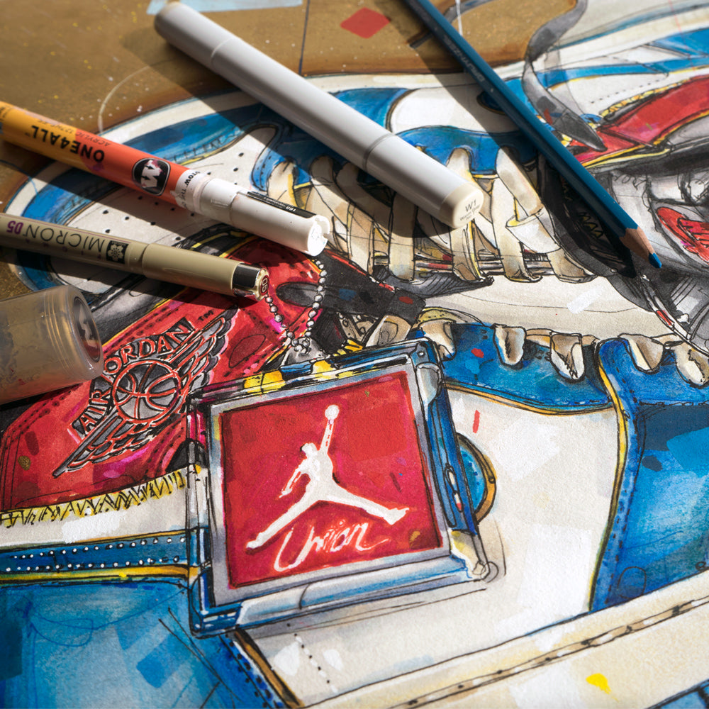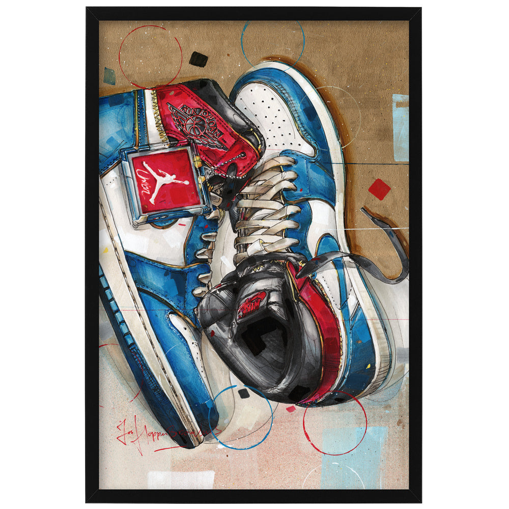 Nike Air Jordan 1 Union LA blue toe Malerei 28x42 cm