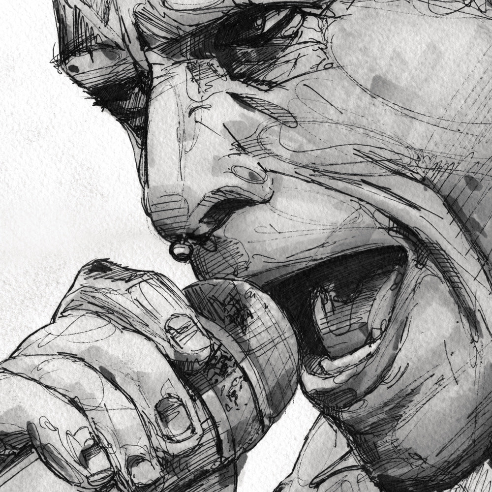 Técnica mixta (bolígrafo, lápiz, marcadores Copic y pintura acrílica Molotow) sobre papel 29,7x42 cm / 11.69x16.53 pulgadas (A3).