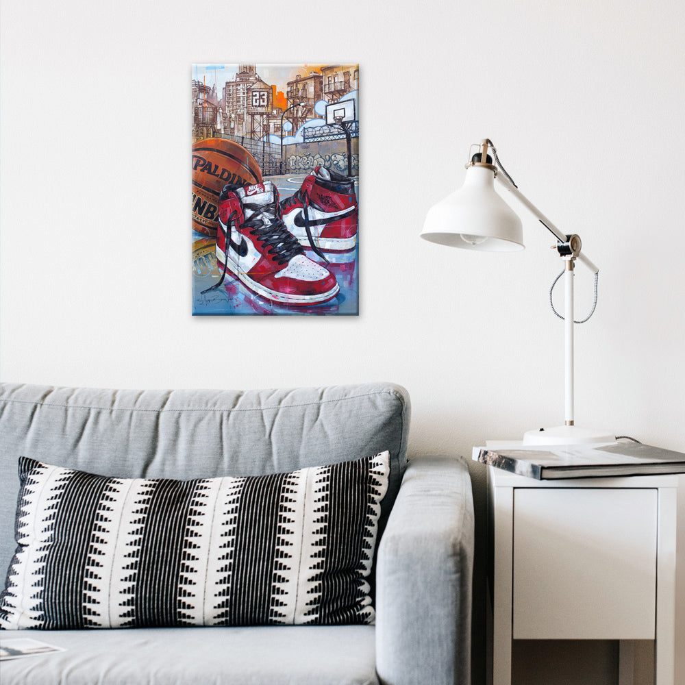 Cada lienzo se estira a mano para una calidad óptima y se monta sobre un robusto marco de madera, con sistema de suspensión. Los bordes están impresos, lo que permite colgar el lienzo directamente en la pared incluso sin marco.