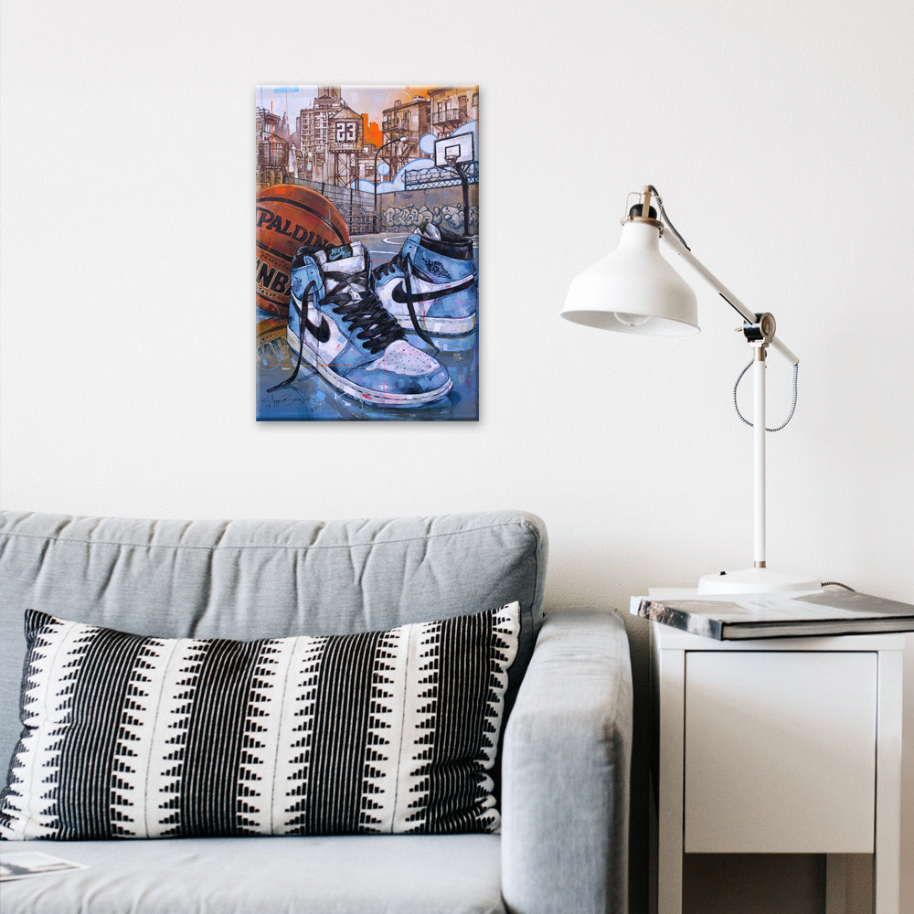 Cada lienzo se estira a mano para una calidad óptima y se monta sobre un robusto marco de madera, con sistema de suspensión. Los bordes están impresos, lo que permite colgar el lienzo directamente en la pared incluso sin marco.