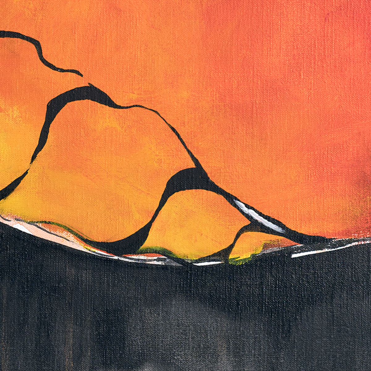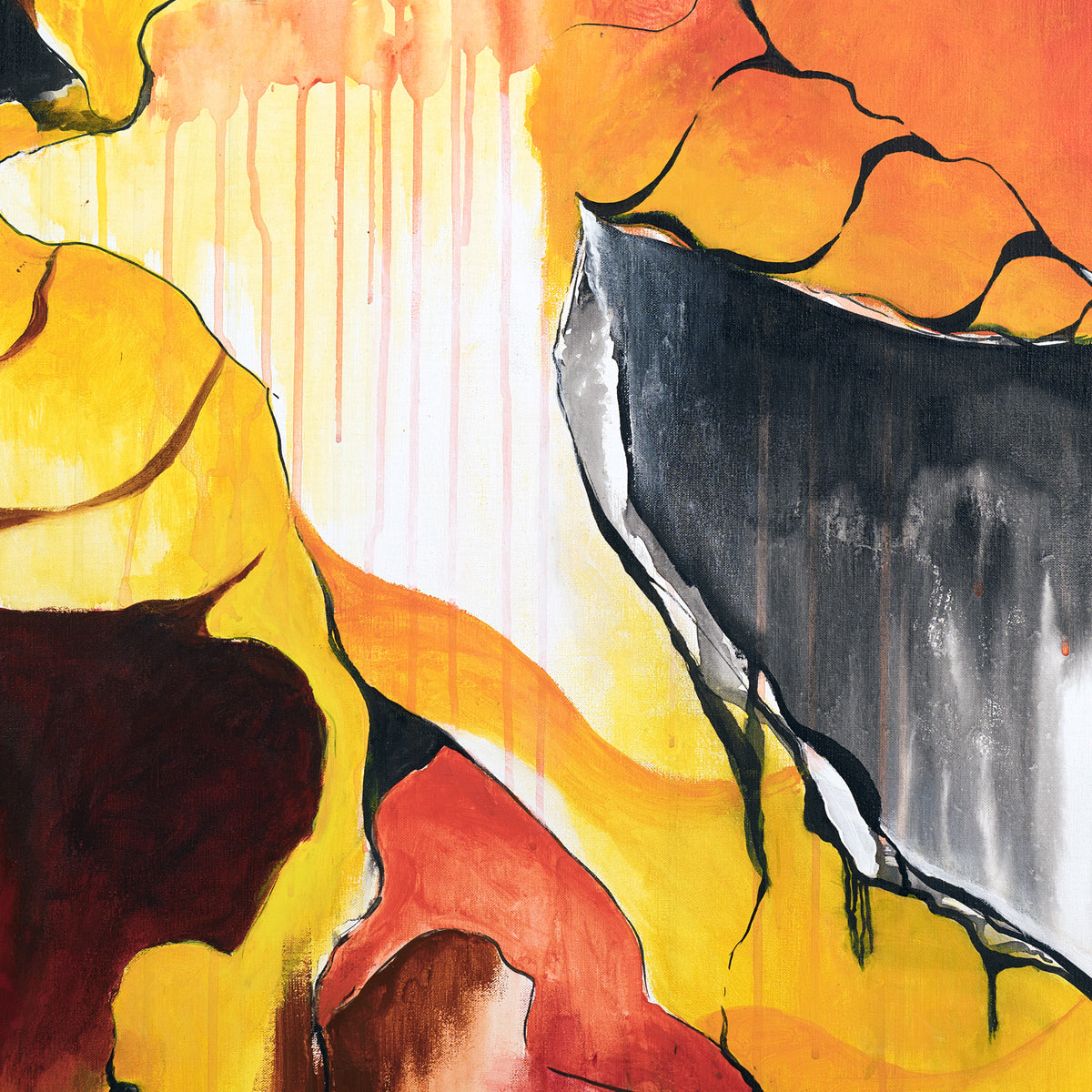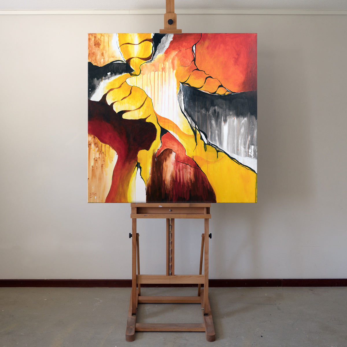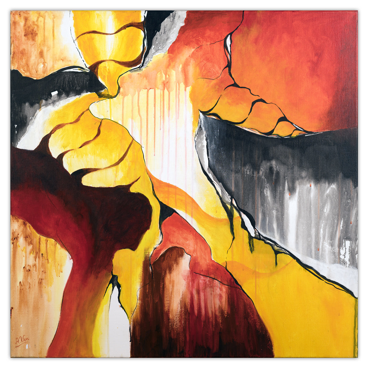 Pintura acrílica y tinta utilizadas sobre lienzo de lino tensado sobre aluminio, 90x90x2,5 cm / 35,43x35,43x0,98 pulgadas.