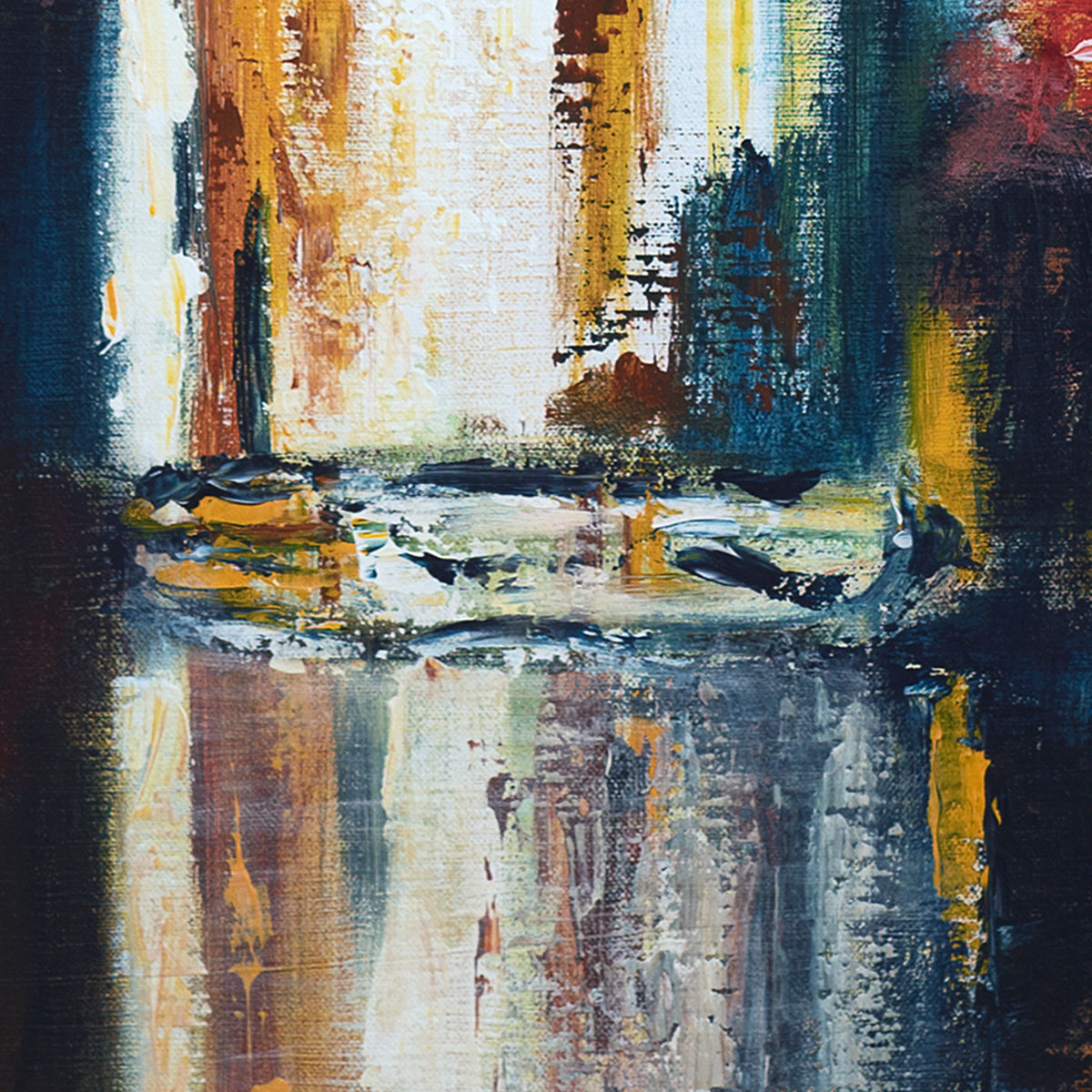 Pintura acrílica sobre lienzo de lino tensado sobre aluminio, 80x80x2,5 cm / 31,50x31,50x0,98 pulgadas.