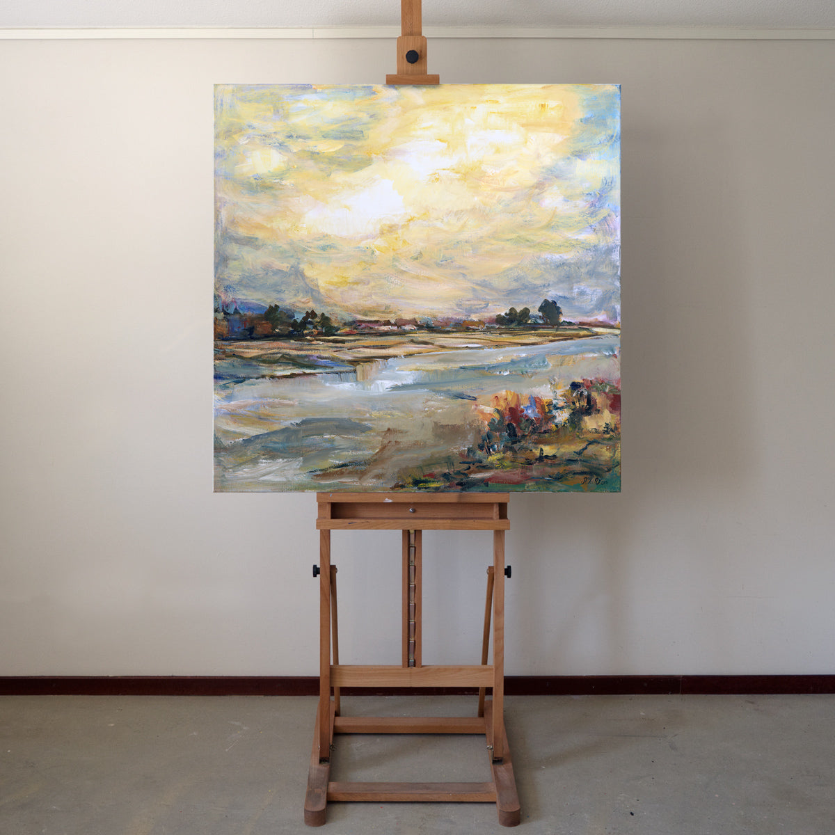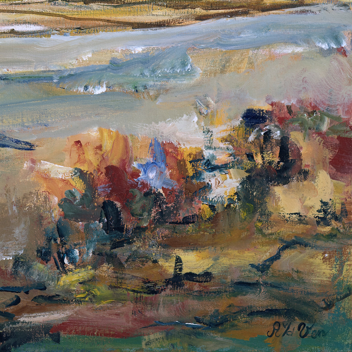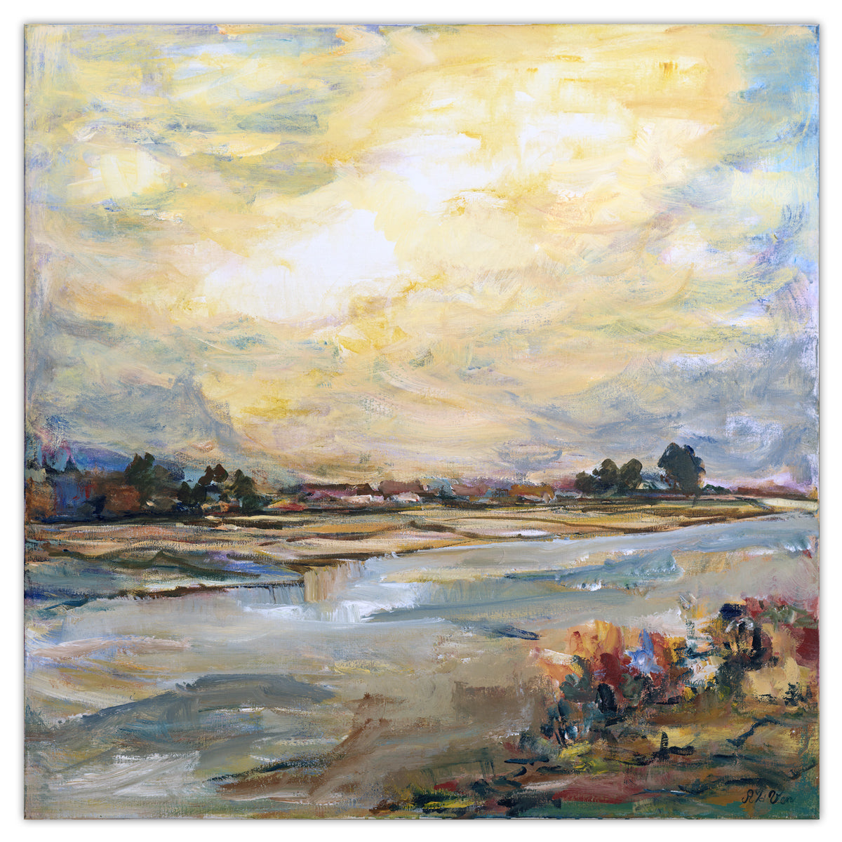 Pintura pueblo fluvial 100x100 cm
