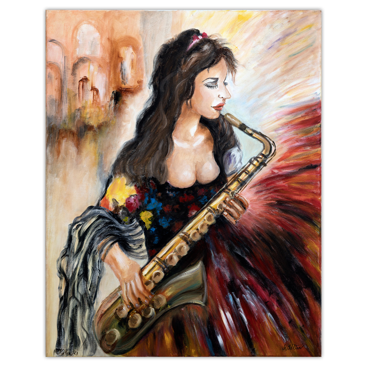 Pintura saxofonista 80x100 cm