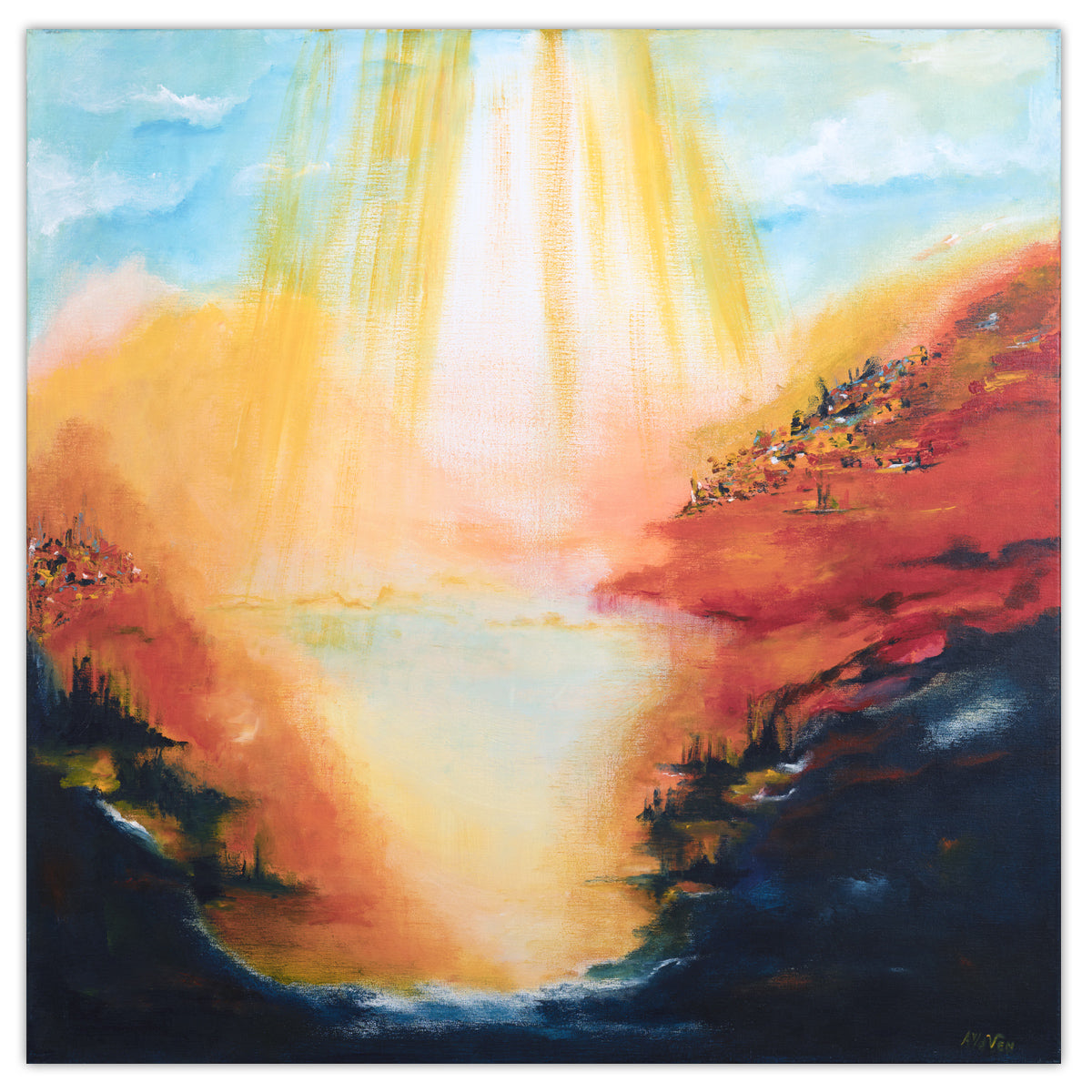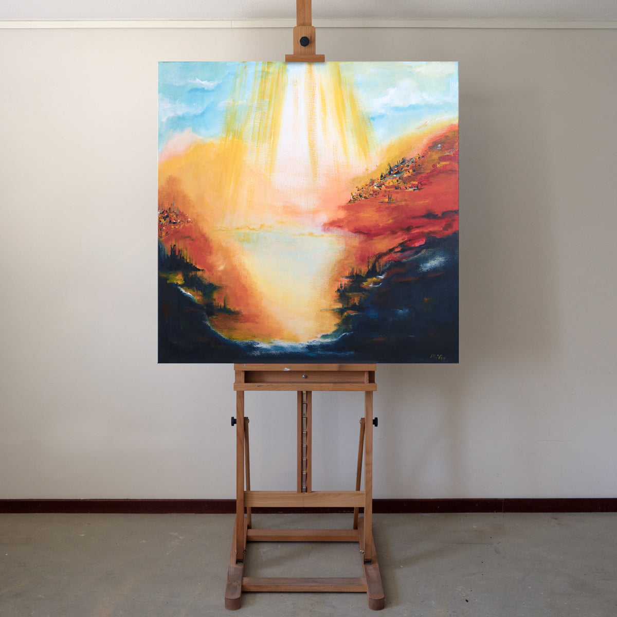 Pintura acrílica sobre lienzo de lino estirado sobre alimunim, 90x90x2,5 cm / 35,43x35,43x0,98 pulgadas.
