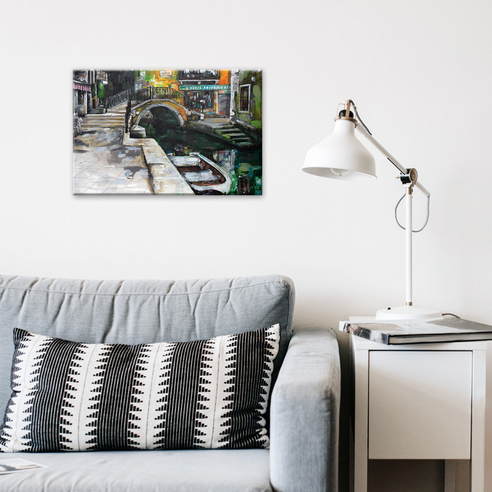 Cada lienzo se estira a mano para una calidad óptima y se monta sobre un robusto marco de madera, con sistema de suspensión. Los bordes están impresos, lo que permite colgar el lienzo directamente en la pared incluso sin marco.