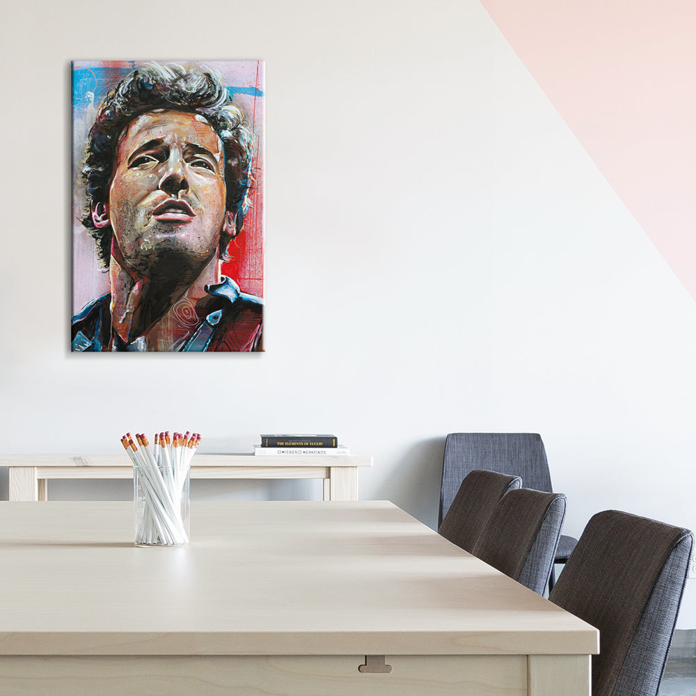 Chaque toile est tendue à la main pour une qualité optimale et montée sur un cadre en bois robuste, équipé d'un système de suspension. Les bords sont imprimés, ce qui permet de l'accrocher directement au mur, même sans cadre.