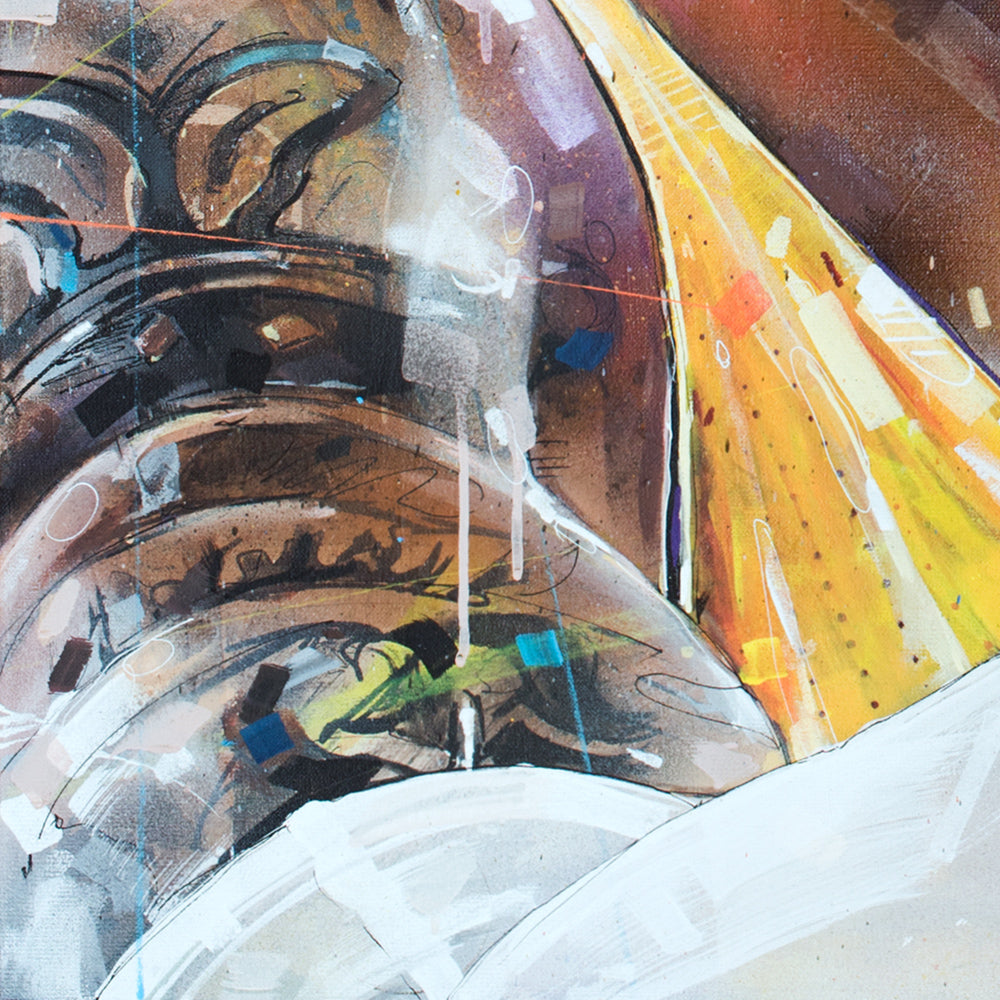Chaque toile est tendue à la main pour une qualité optimale et montée sur un cadre en bois robuste, équipé d'un système de suspension. Les bords sont imprimés, ce qui permet de l'accrocher directement au mur, même sans cadre.