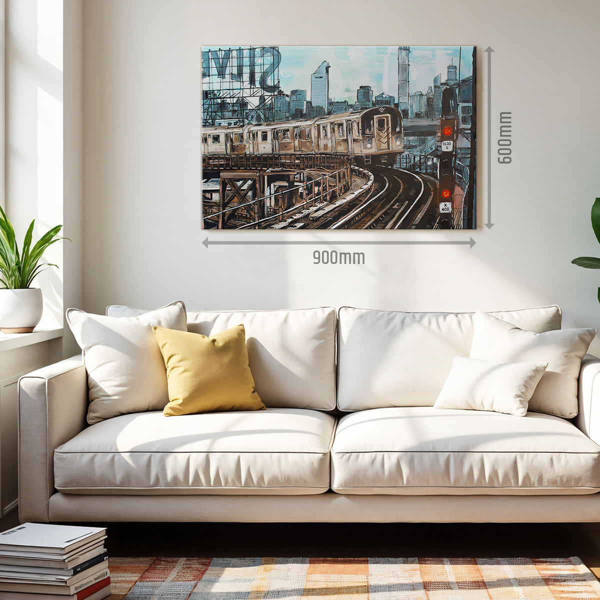 Chaque toile est tendue à la main pour une qualité optimale et montée sur un cadre en bois robuste, équipé d'un système de suspension. Les bords sont imprimés, ce qui permet de l'accrocher directement au mur, même sans cadre.