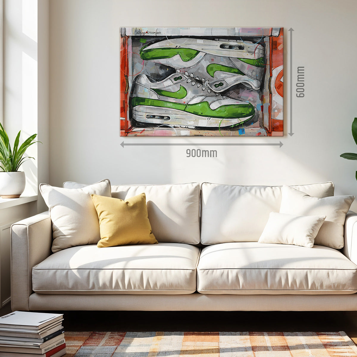 Chaque toile est tendue à la main pour une qualité optimale et montée sur un cadre en bois robuste, équipé d'un système de suspension. Les bords sont imprimés, ce qui permet de l'accrocher directement au mur, même sans cadre.