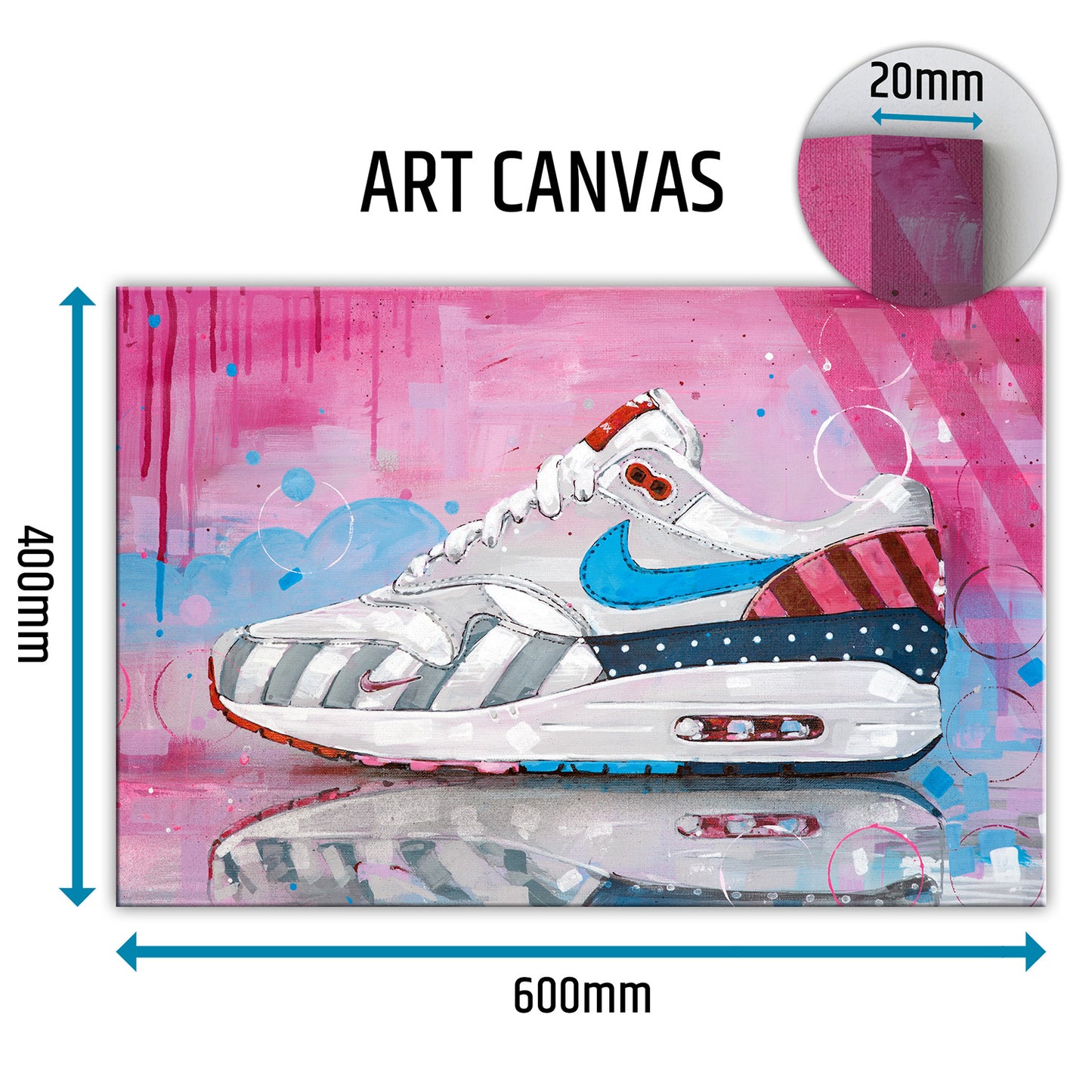 Elk canvas is met de hand opgespannen voor optimale kwaliteit en gemonteerd op een stevig houten frame, inclusief ophangsysteem. De randen zijn bedrukt, waardoor het canvas ook zonder frame direct aan de muur kan worden gehangen.