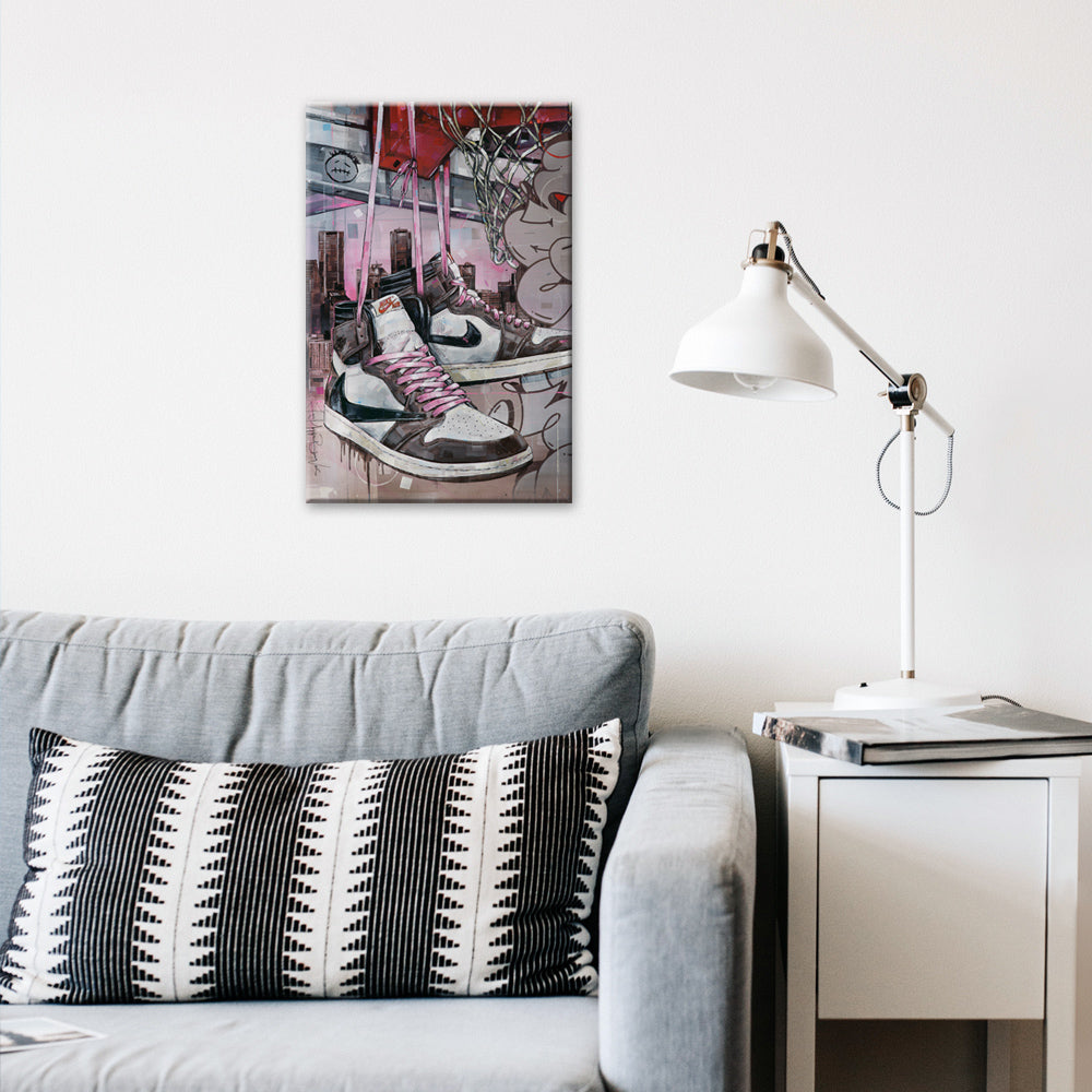 Each canvas is hand-stretched for optimal quality and mounted on a sturdy wooden frame, including a hanging system. The edges are printed, allowing the canvas to be hung directly on the wall even without a frame.