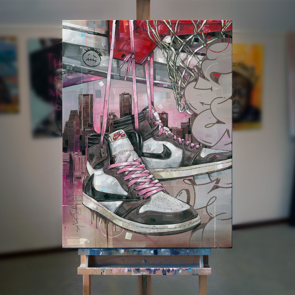 Nike Air Jordan 1 high Travis Scott - pink laces basket painting 60x80 cm (SOLD)
