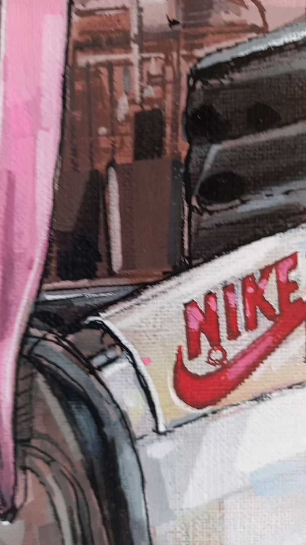 Nike Air Jordan 1 Travis Scott high - pink laces basket art print