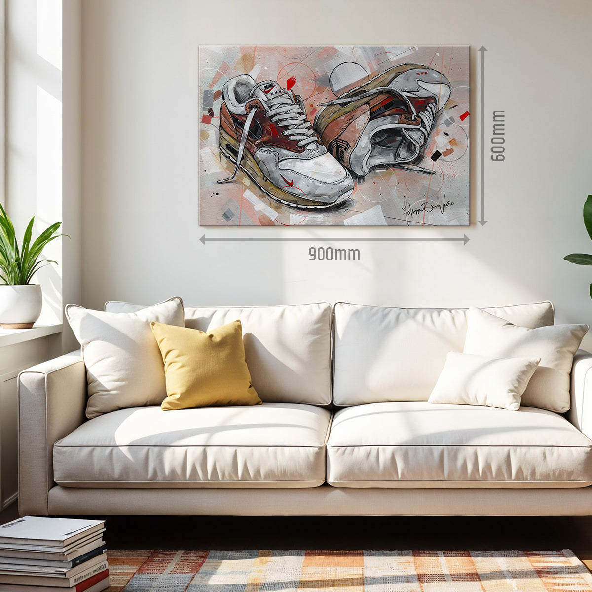 Each canvas is hand-stretched for optimal quality and mounted on a sturdy wooden frame, including a hanging system. The edges are printed, allowing the canvas to be hung directly on the wall even without a frame.