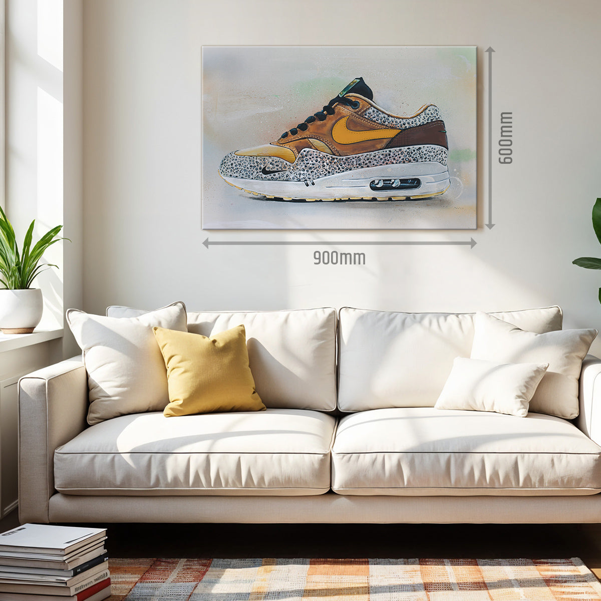 Each canvas is hand-stretched for optimal quality and mounted on a sturdy wooden frame, including a hanging system. The edges are printed, allowing the canvas to be hung directly on the wall even without a frame.