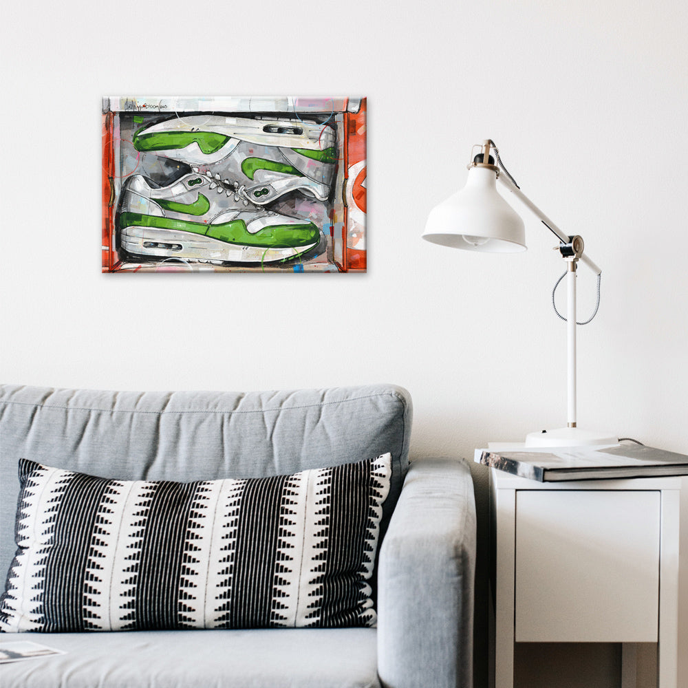 Each canvas is hand-stretched for optimal quality and mounted on a sturdy wooden frame, including a hanging system. The edges are printed, allowing the canvas to be hung directly on the wall even without a frame.