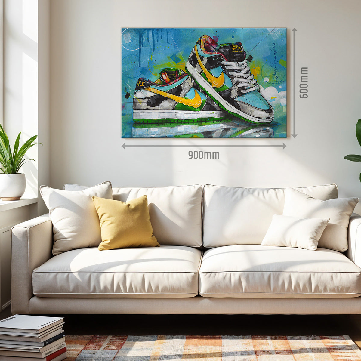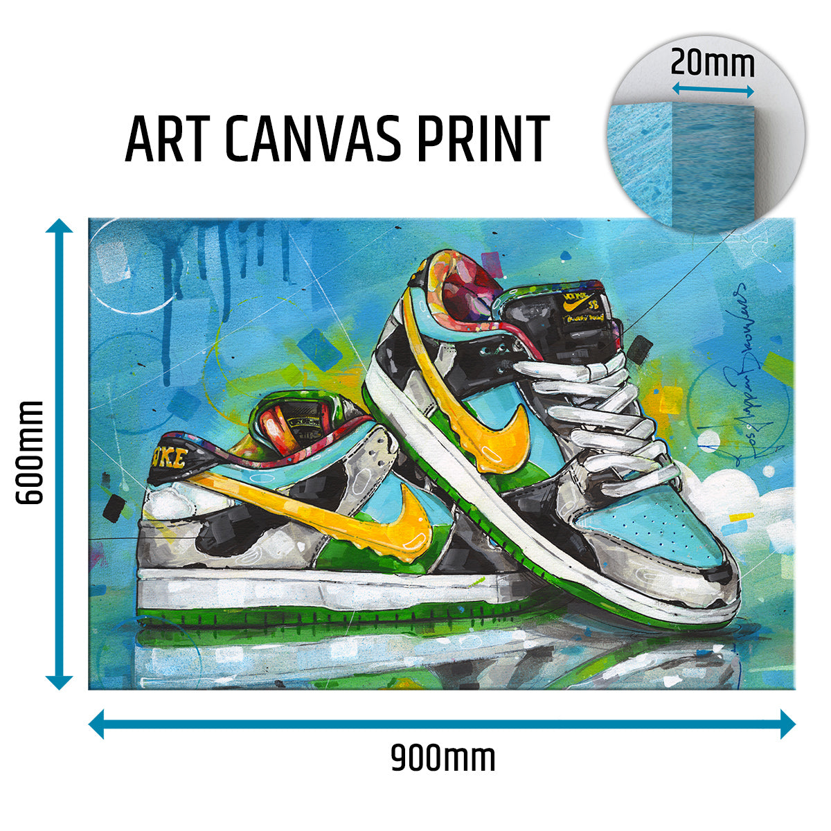 Each canvas is hand-stretched for optimal quality and mounted on a sturdy wooden frame, including a hanging system. The edges are printed, allowing the canvas to be hung directly on the wall even without a frame.