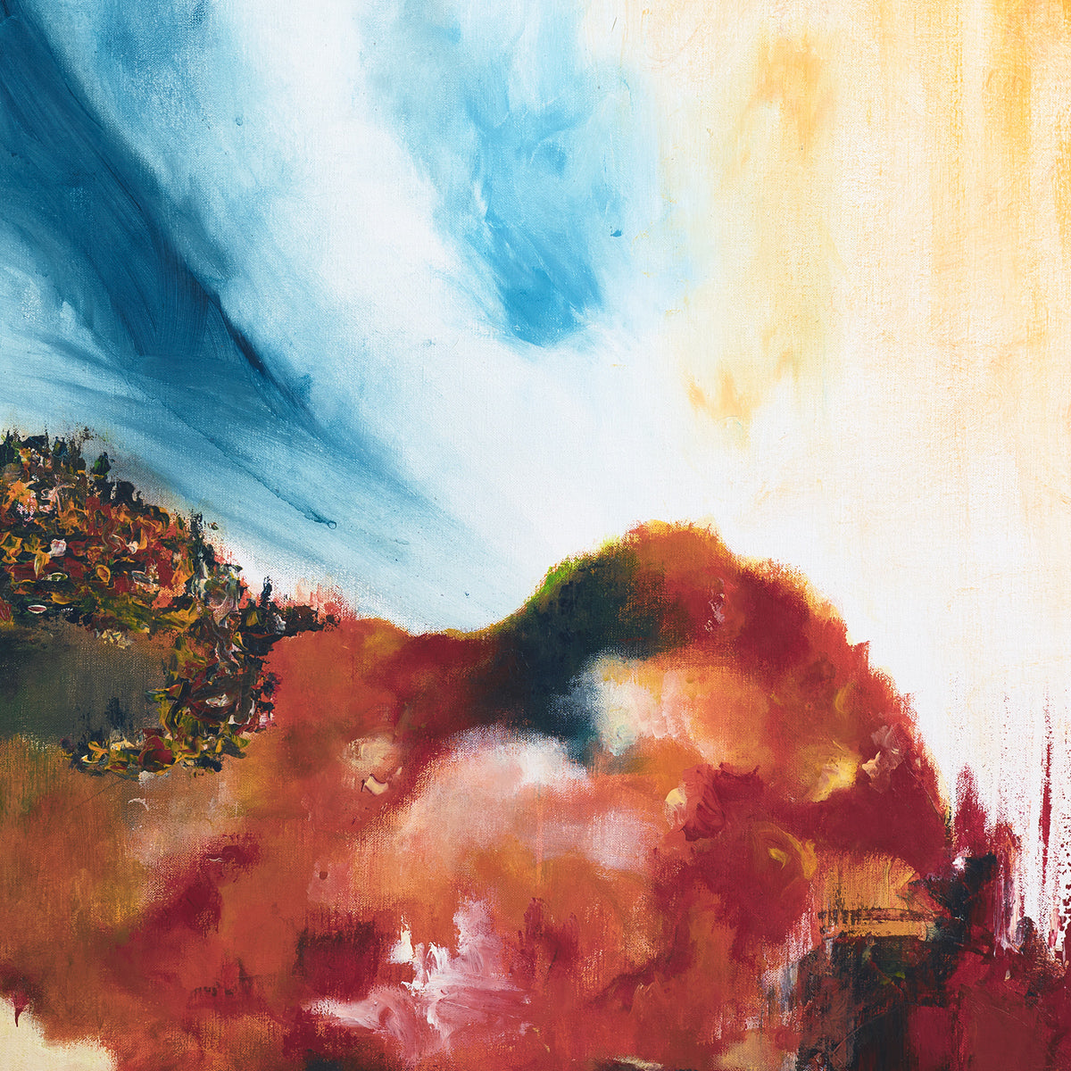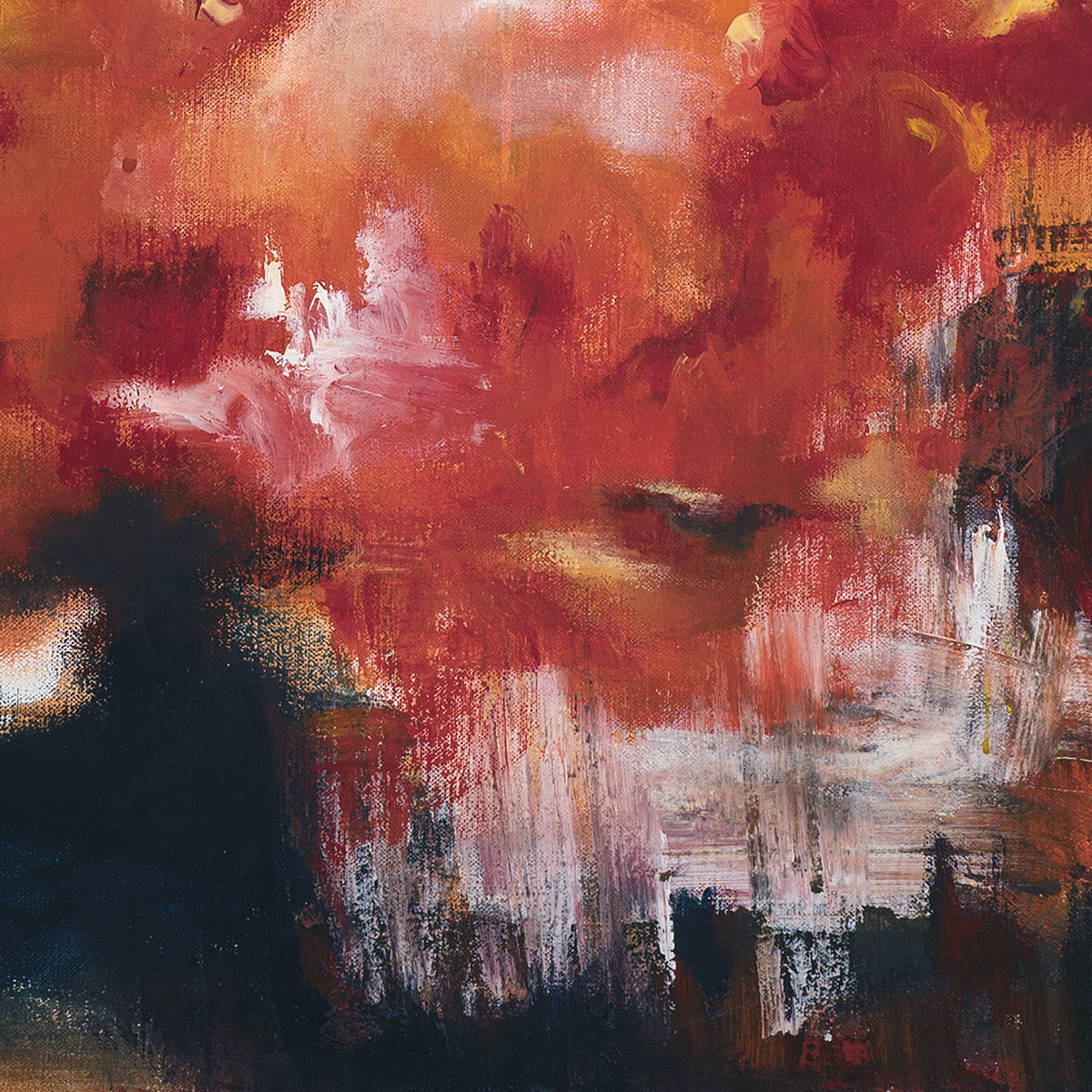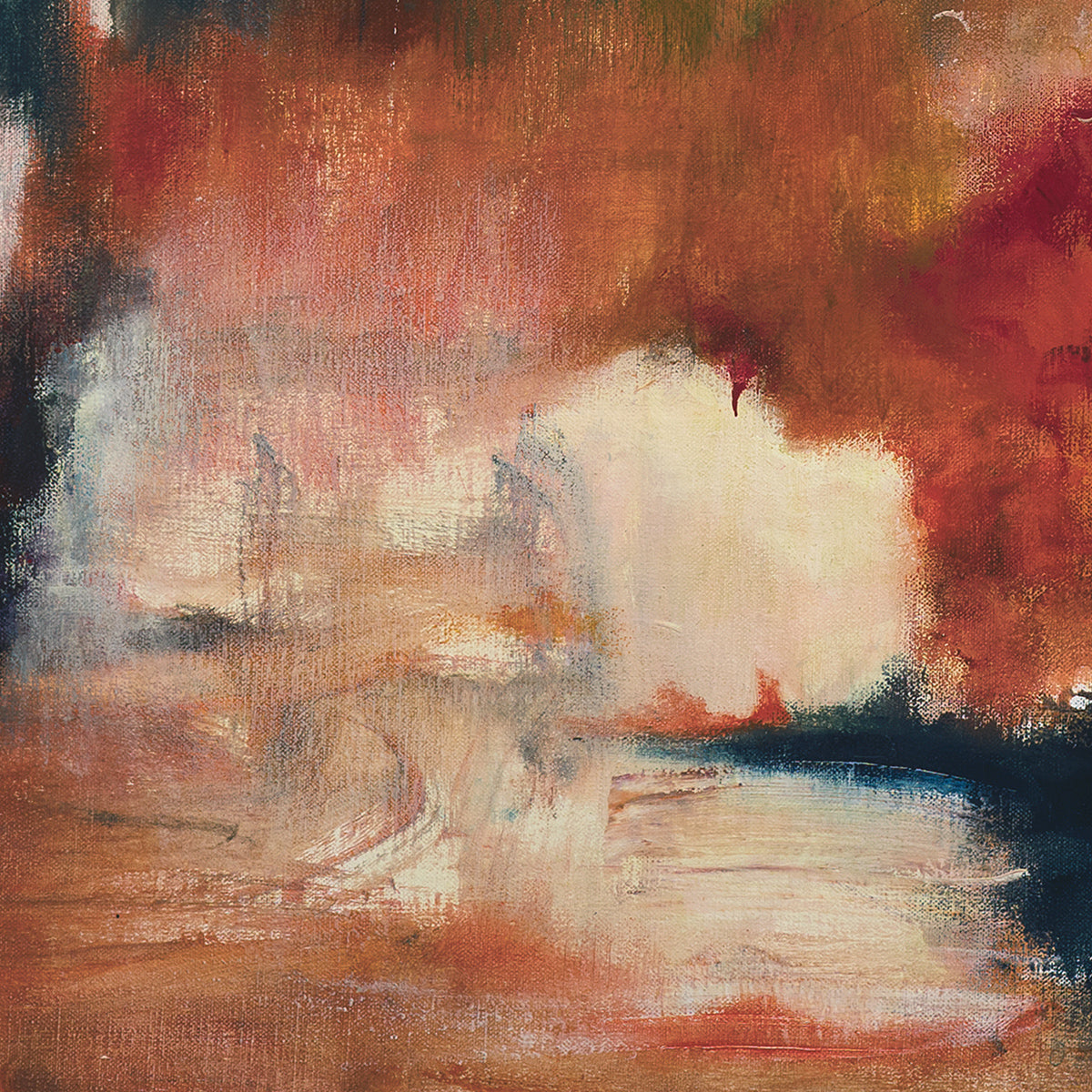 An abstract painting in which the use of cold colors makes the sky move and gives the idea of a storm approaching.