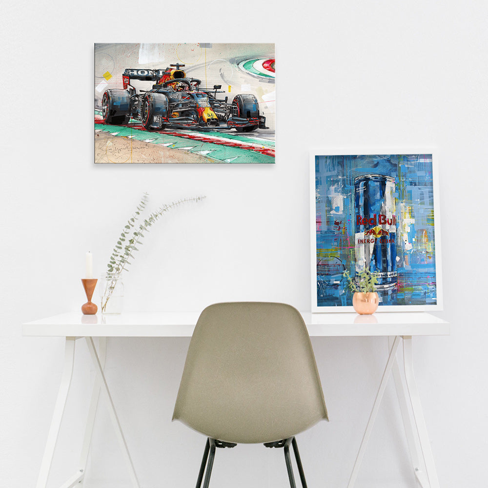Each canvas is hand-stretched for optimal quality and mounted on a sturdy wooden frame, including a hanging system. The edges are printed, allowing the canvas to be hung directly on the wall even without a frame.